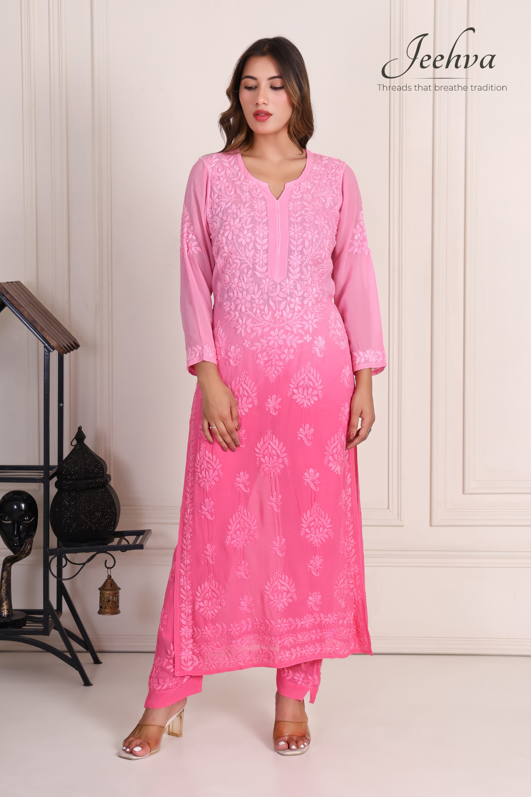 ✔ Embroidery: Authentic Lucknowi Chikankari, intricately hand-embroidered